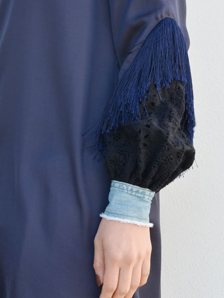 コットンレースに揺れるフリンジ、カジュアルなアイテムにも馴染むデニムのカフスがポイント。