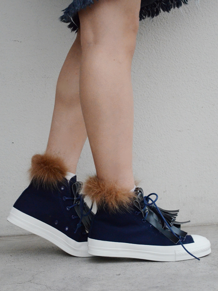 カジュアルなスニーカーにリアルファーでフェミニンな要素を掛け合わせたMUVEILらしい遊びココロ溢れる一足です。