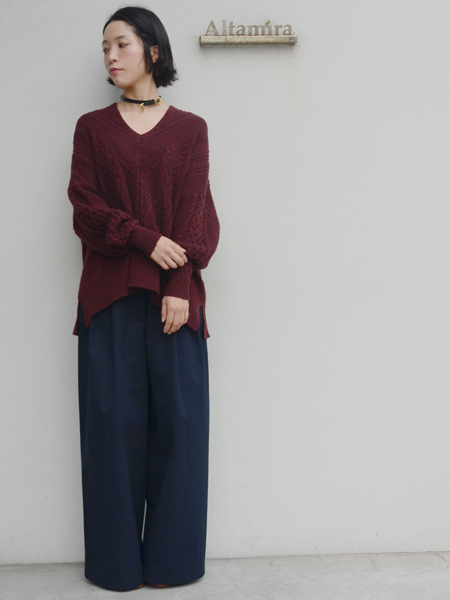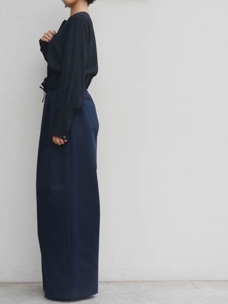 ウエストをぎゅっと絞ったようなデザインはトップスをインするスタイルや、ショートトップスにも合わせやすいです。