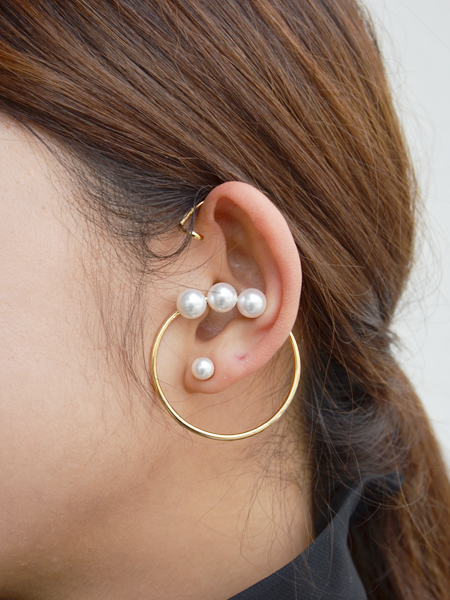 セットのなっている人粒のパールはピアスになっているので、空いているピアスホールにお好きにつけていただくとデザインが連動して華やかさが増します。