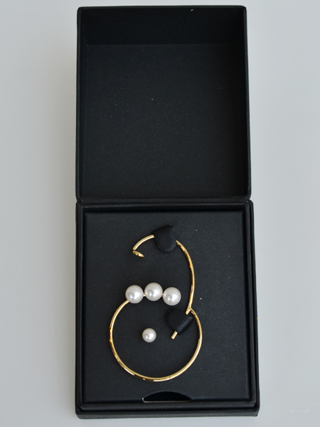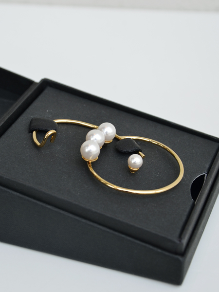 横に並んだパールとゴールドの曲線が華やかでエレガントなデザイン。