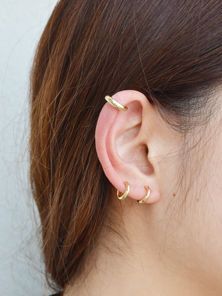 2種類のサイズが4個セットになったイヤカフ。耳のいろんな場所に装着でき、耳のコーディネイトを楽しめるアイテムです。