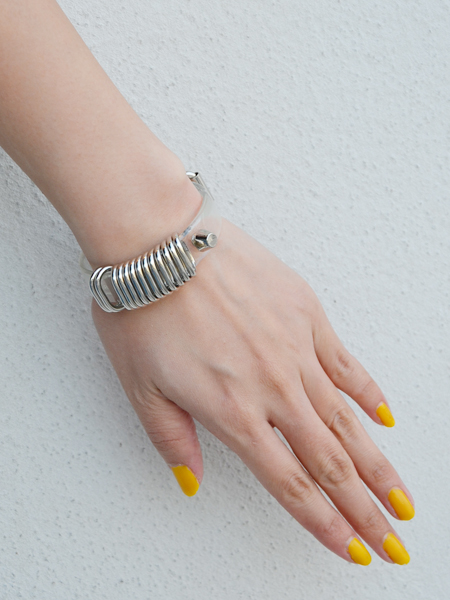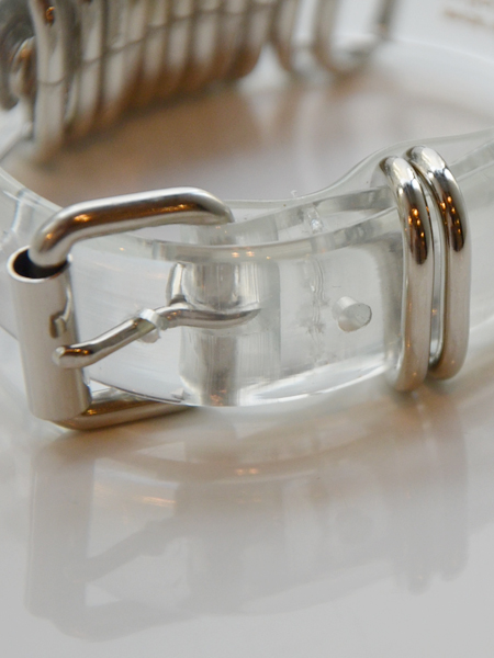 クリアービニール素材にバーが付いたブレスレット。夏らしさを感じるアイテムです。ビニールの幅は1.5cmになります。