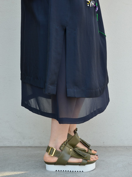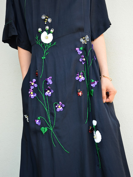 コレクションテーマであるミューズが愛用しているチャイナドレス。ミュベールらしく立体的な刺繍と鮮やかな色使いで?いま”に合った形にリデザインされたドレス。ゆったりとしたシルエットで着用しやすいアイテム。