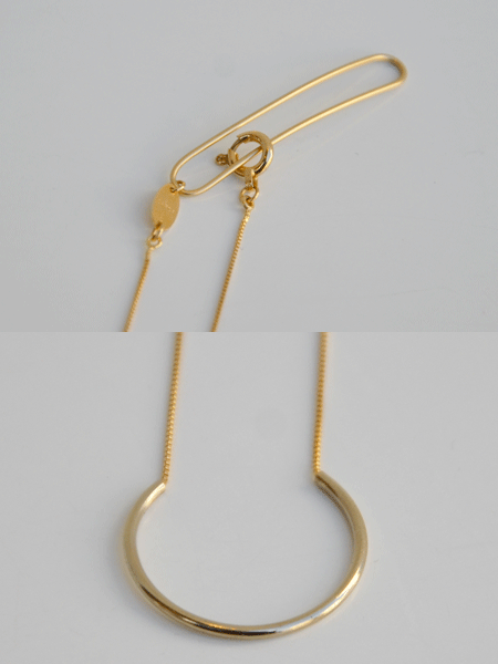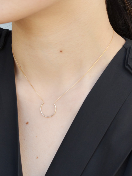 ひづめのような、ラウンドしたモチーフがさりげなくも主張のあるネックレス。