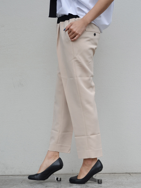 程よいハリ感ととろみが合わさったラグジュアリーな素材でありながら家庭での洗濯も可能な高品質素材。大人のリラックススタイルに、一本持っておきたいパンツです。