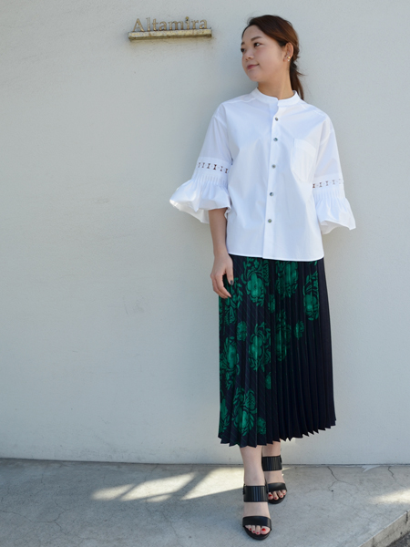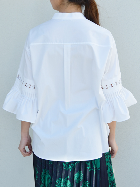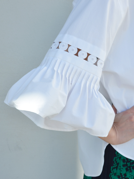near.nippon(ニアーニッポン)から、シンプルなシャツを袖周りのデザインで魅せる一枚。袖のモチーフは職人の手作業によるもの。