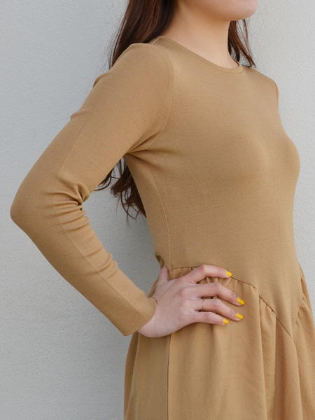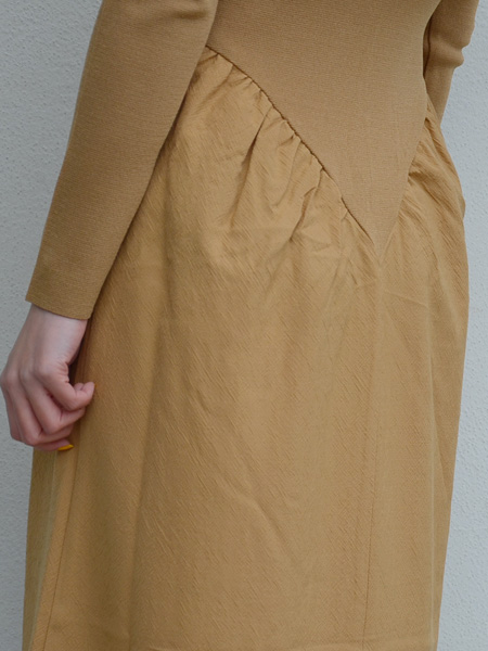 トップはニット、スカート部分はレーヨンに少しナイロンを入れてハリ感を出しています。
