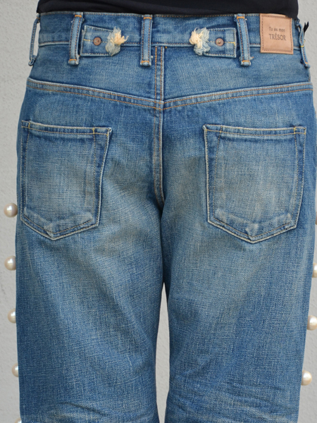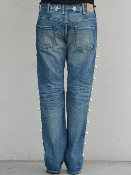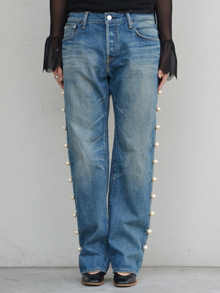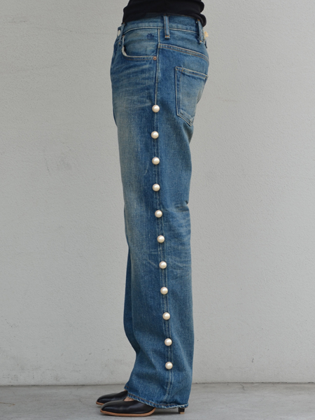 Tu es mon TRESOR(トゥ エ モン トレゾア)から両サイドに大粒のパールを並べてアクセントを利かせたデニムパンツです。