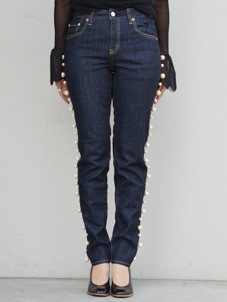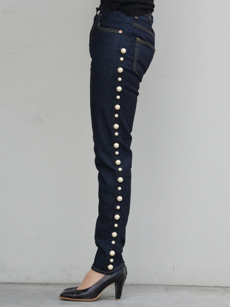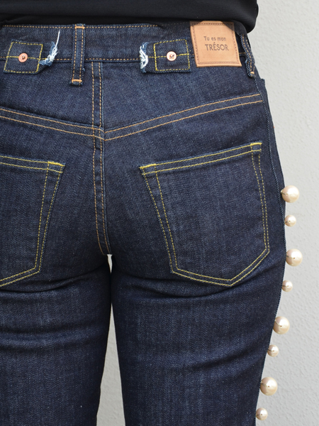 Tu es mon TRESOR(トゥ エ モン トレゾア)からサイドのパールがアクセントになったスキニージーンズです。