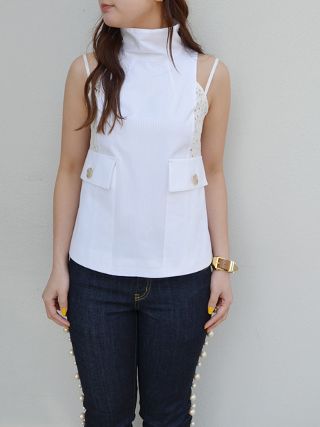 - AKIRANAKA combi lace straipe PO(ハイネックN/Sシャツ)