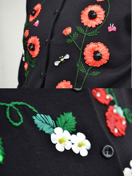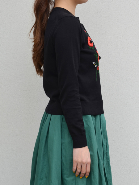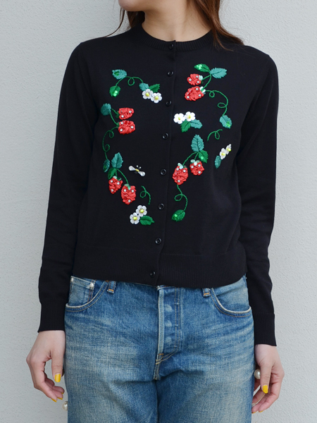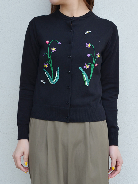 刺繍やビジューで作り出されたお花やハチたちが華やかなカーディガン。さらっとした着心地のコットン生地で薄手のアウターとしてはもちろんコンパクトなサイズ感でトップスとしても着ていただけます。