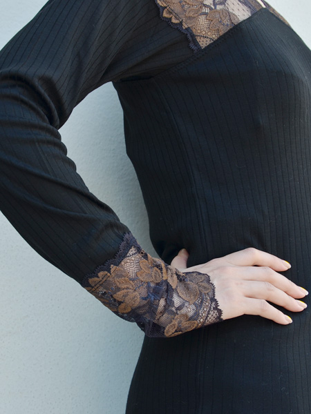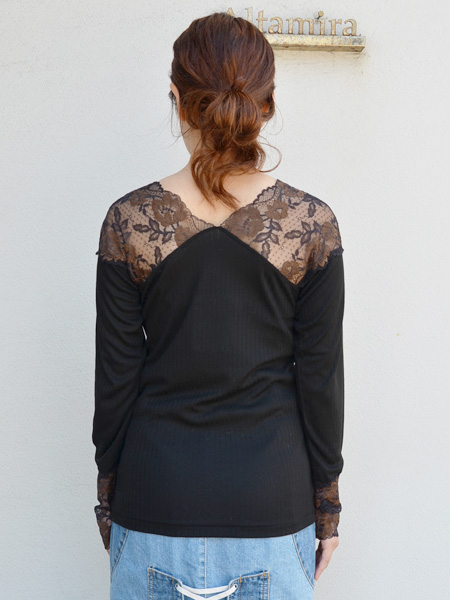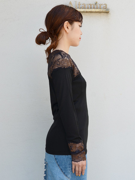 テンセル混レーヨン素材のリブジャージーに大胆なレース使いが目をひく肌触りの良いトップス。インナー使いにも非常に便利なアイテム。
