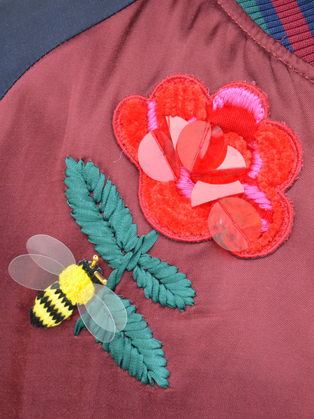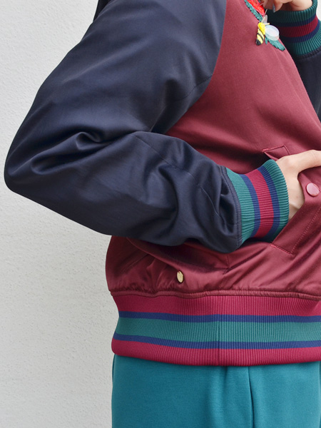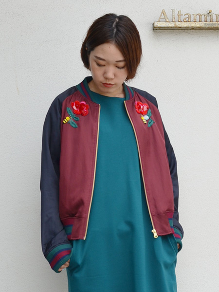 今季の象徴とも言えるスカジャン。こちらは後ろ姿がシンプルなバージョン。「0niwanobara(=お庭の薔薇)」ロゴと一緒に添えられたハチ&花がポイントに。