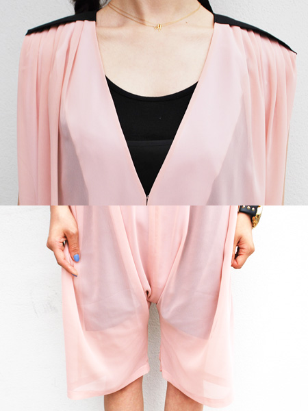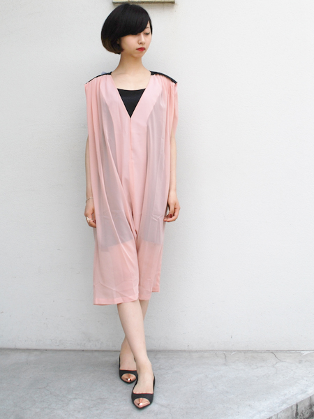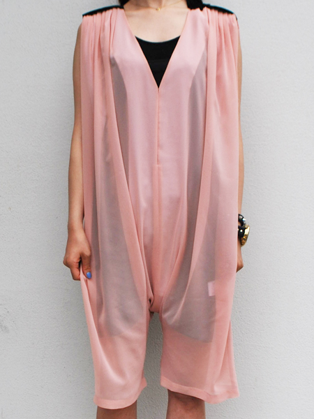 涼しいシフォン素材を使っているのが特徴のドレスオールインワン。