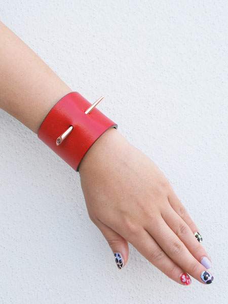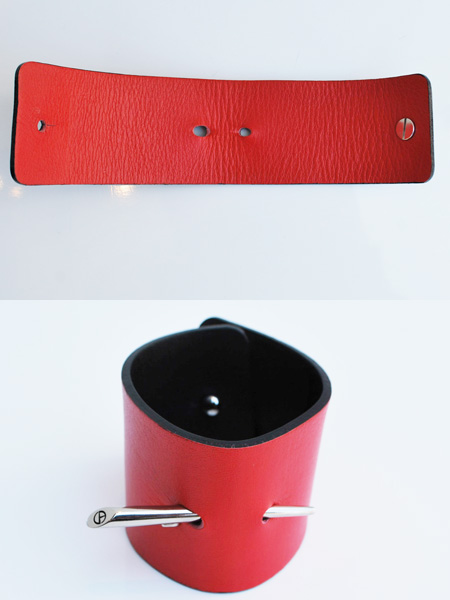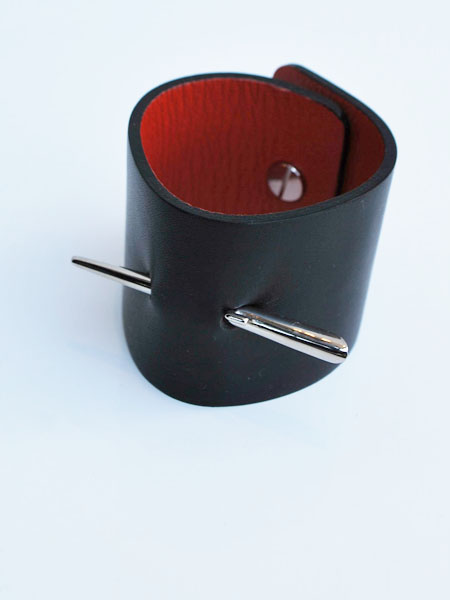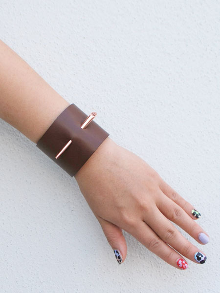 リバーシブルになっているレザーブレスレットは、しっかりと手首をマークしてくれます。