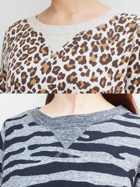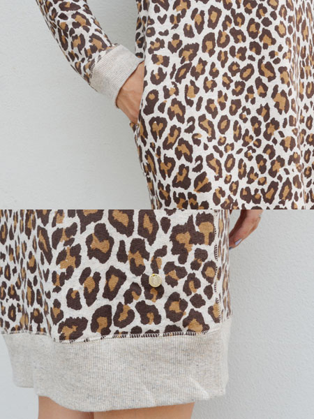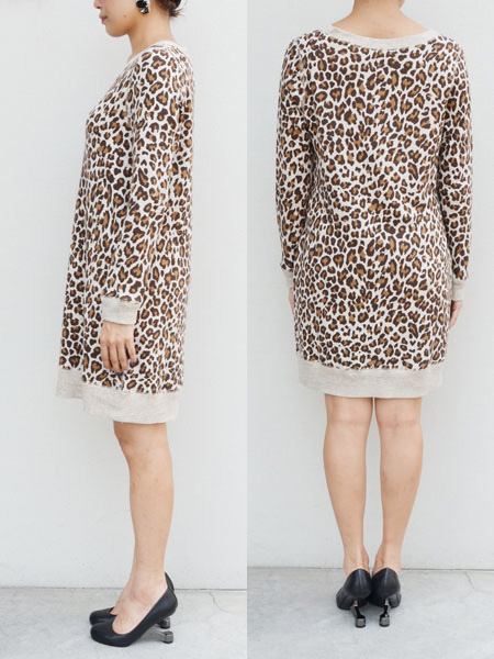 スウェット素材にアニマルプリントが、ラグジュアリーな雰囲気ながらもカジュアルに楽しんで頂けるワンピース。