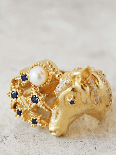 ブランド象徴とする、ユニコーンをモチーフにしたリング.
