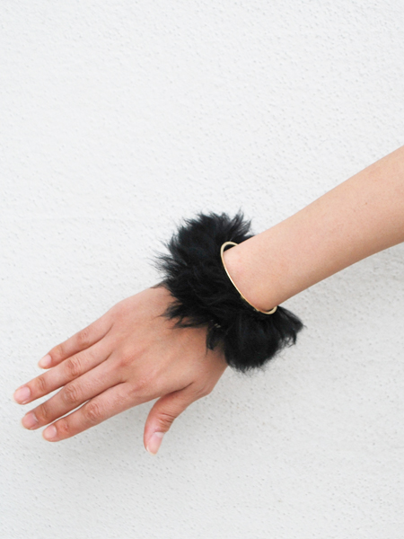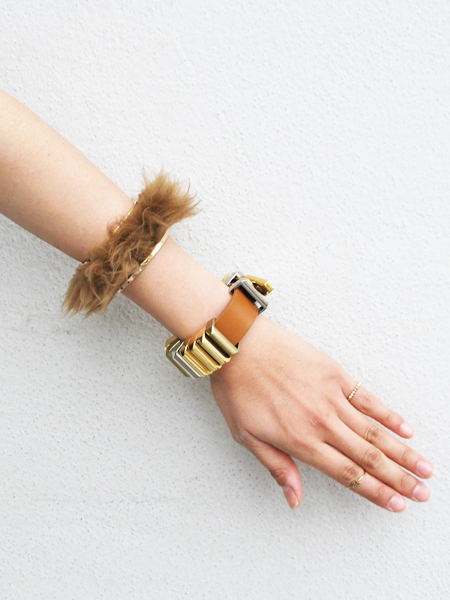 モード感の強いメタルやチェーンにファジーな素材感をミックスさせることで、トレンドをおさえつつも、より、優しげな仕上がり。