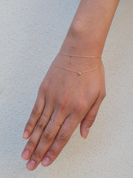 上品で華奢なリングと、ダイヤモンドのさりげない輝きが、手元に上質さをプラスしてくれるリングです。