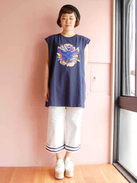 Wonder AnatomieのOWL タンク。派手なカラー使いがWonder Anatomieらしい、フクロウプリントのノースリーブです。