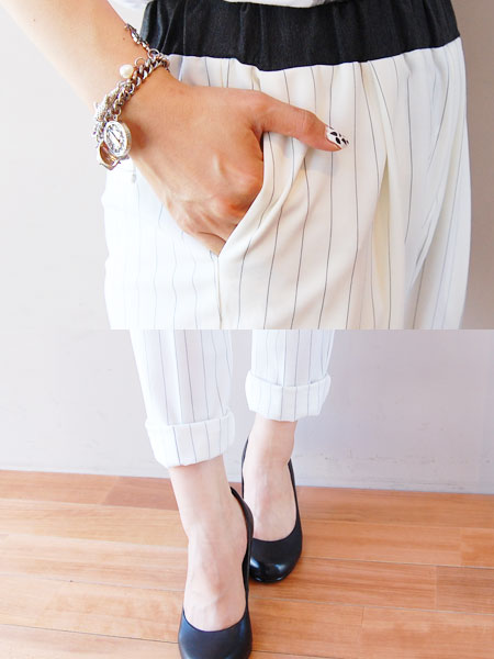 ウエストもゴムとドロスト仕様で、ストレスフリーに穿いて頂けます。