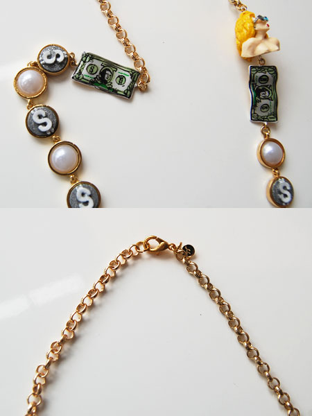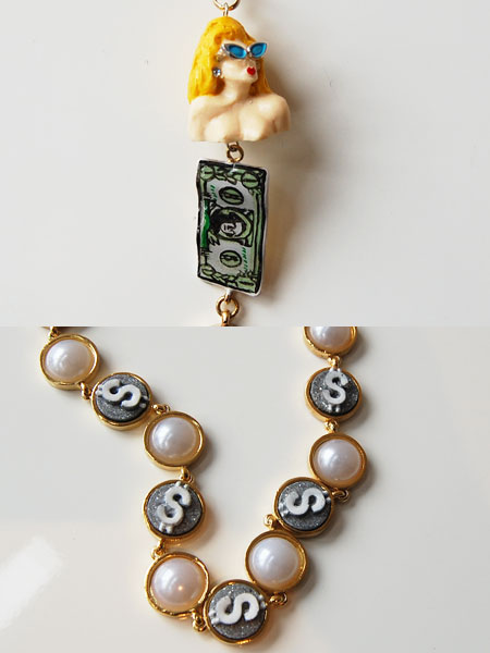 ドル札をモチーフにパールをふんだんに使ったロングネックレス。